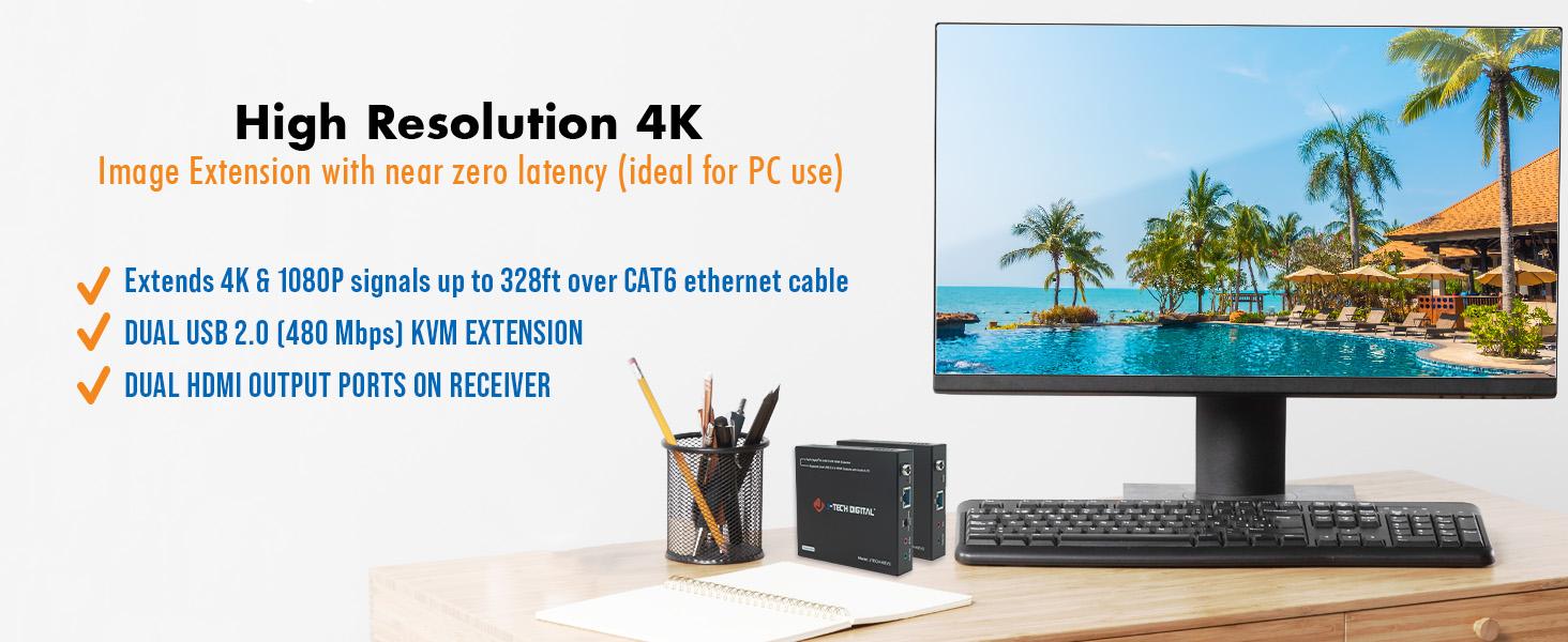 4K 30Hz HDMI and KVM Extender Over Ethernet with Dual HDMI Outputs and Audio Extraction
