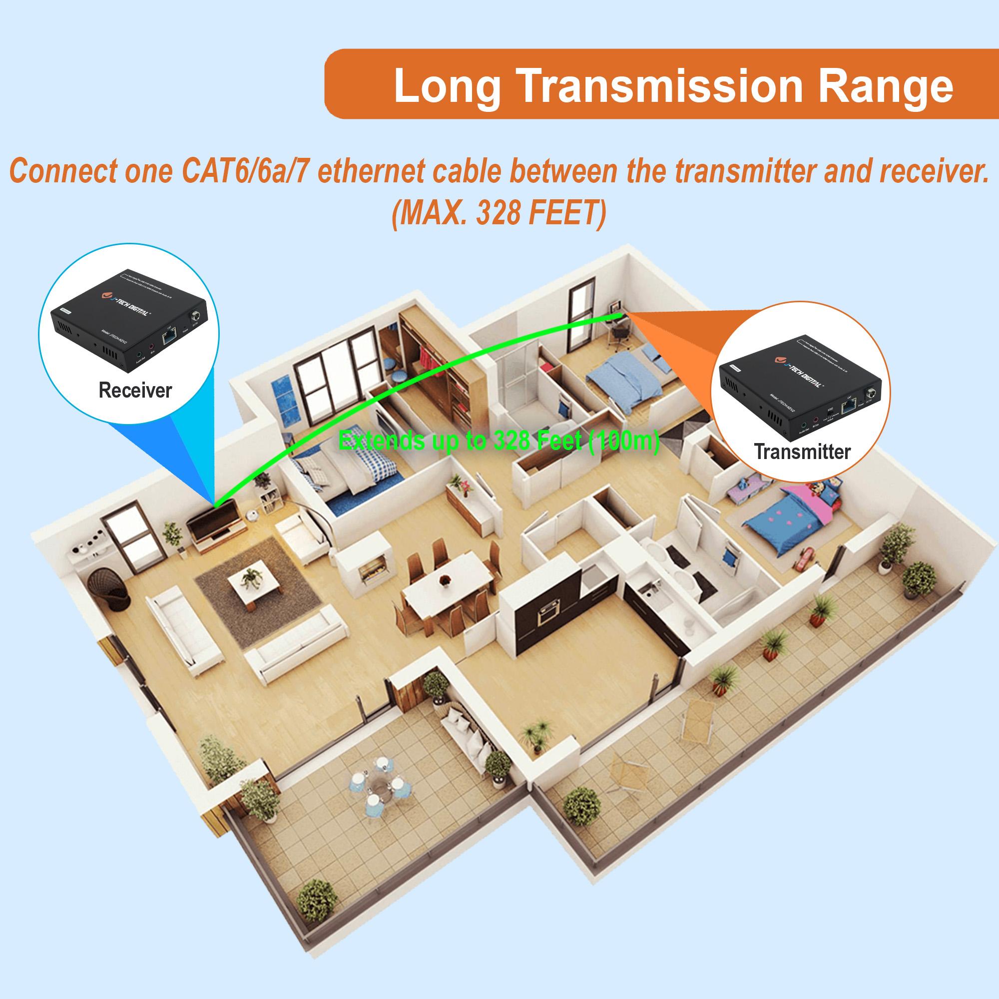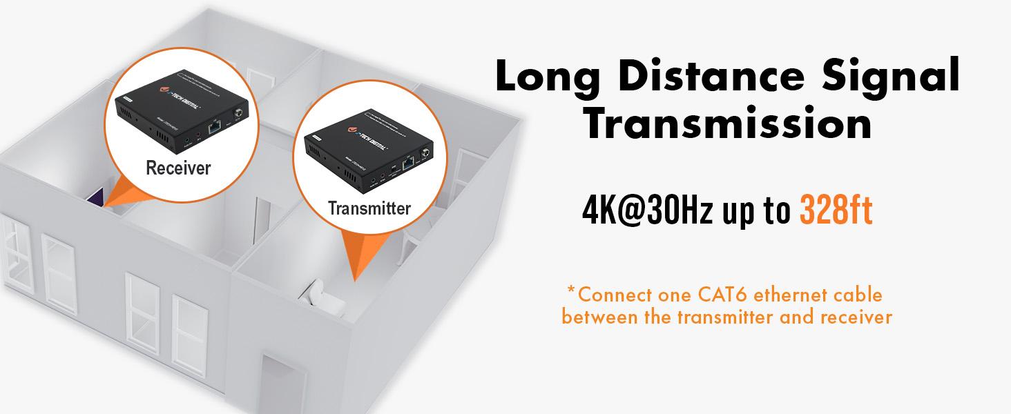 ✅ Transmission Distance– 328 FT / 100M over CAT6 Solid Copper
