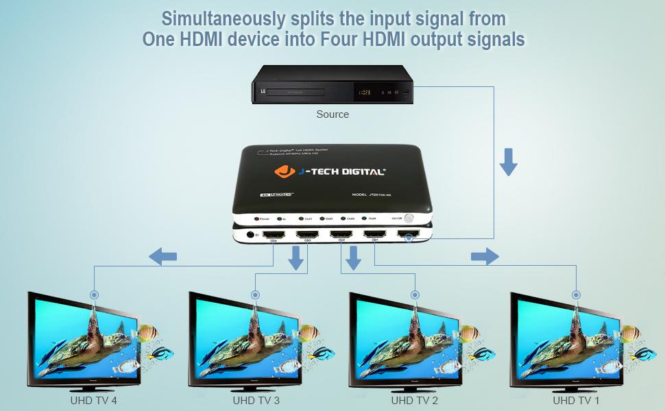 ✅ 1 HDMI input signal splits to 4 HDMI sink devices simultaneously.