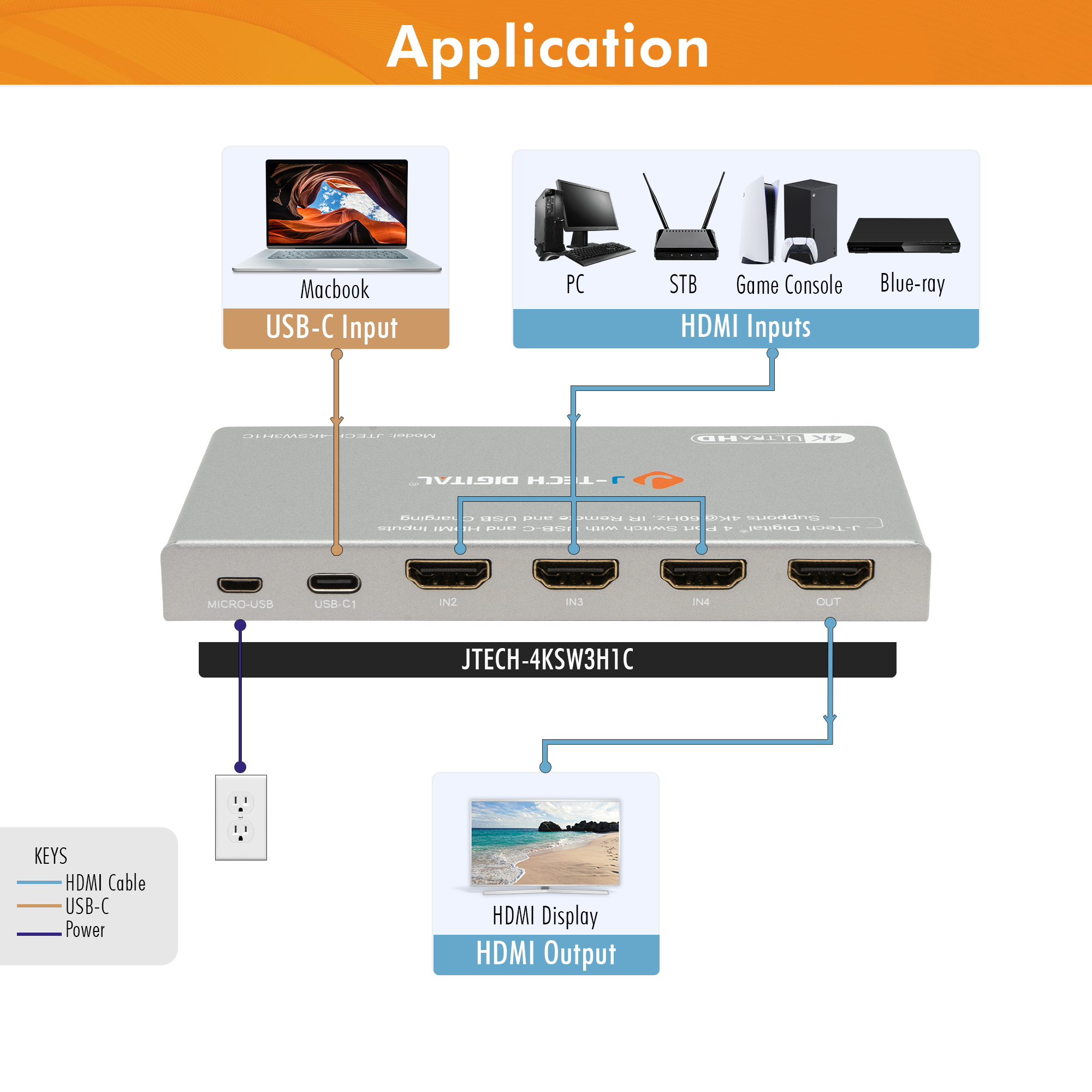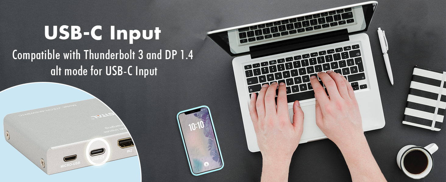 4K 60Hz 4x1 HDMI Switch with USB-C Input