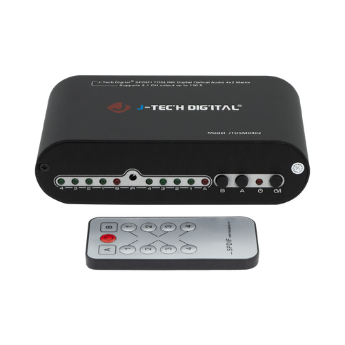 Manage multiple digital audio sources with this 4x2 SPDIF Optical Audio Matrix Switch, featuring 4 optical inputs and 2 optical outputs. Easily route any input to either or both outputs simultaneously for a true matrix function, giving you complete flexibility in your audio setup.