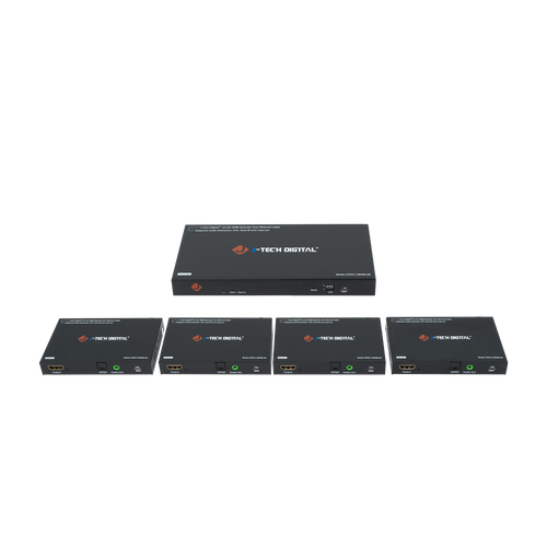 The JTECH-14EX60-AE HDMI extender splitter allows users to split an incoming HDMI signal to up to 4 displays. With the use of the included receivers, that signal can be extended up to 196ft. over single Cat5e/6 cable (per receiver) with ease. It also supports 4K > 1080P downscaling feature on the receiver end, so that users can utilize different resolution monitors within their setup. A local HDMI loop-out port is available on the transmitter so that users can monitor the source content on their remote displays via a local display.