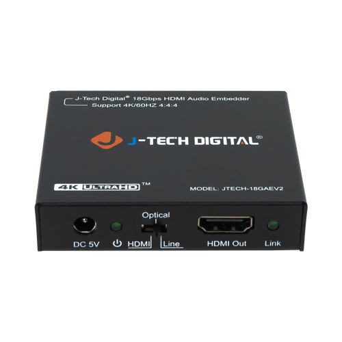 Do you need to merge separate audio and video sources into a single HDMI signal? Whether you're creating video tutorials or revisiting live stream gaming, the JTECH-18GAEV2 is your solution! This device can embed HDMI video (up to 4K@60Hz 4:4:4) along with either multi-channel digital optical audio (TOSLINK/SPDIF) or analog audio (3.5mm/line) into one HDMI output. You also have the flexibility to retain the original HDMI audio instead of replacing it. This feature allows for more options without the hassle of swapping cables; simply flip a switch. Now, instead of just sharing video content, you can ensure your audience hears your commentary as they watch.