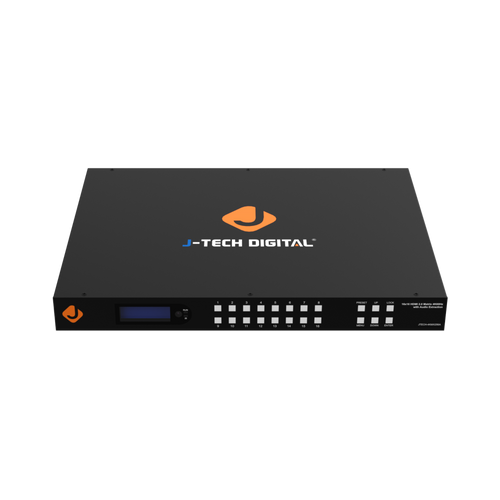 The JTECH-4KMX256A is a versatile 16x16 4K 60Hz HDMI matrix designed to connect up to 16 HDMI sources and distribute their signals to 16 separate displays. It supports both one-to-many and many-to-many routing configurations, making it an ideal audio/video distribution solution for both commercial and residential setups. Additionally, the matrix includes 16 analog audio ports for creating an audio matrix. Enjoy content with full detail thanks to support for HDR, HDR10, and Dolby Vision. The unit can be easily controlled through various methods for your convenience. Smart EDID management ensures broad compatibility, while the 4K to 1080P downscaling feature allows you to mix and match displays without concerns about upgrading your equipment.