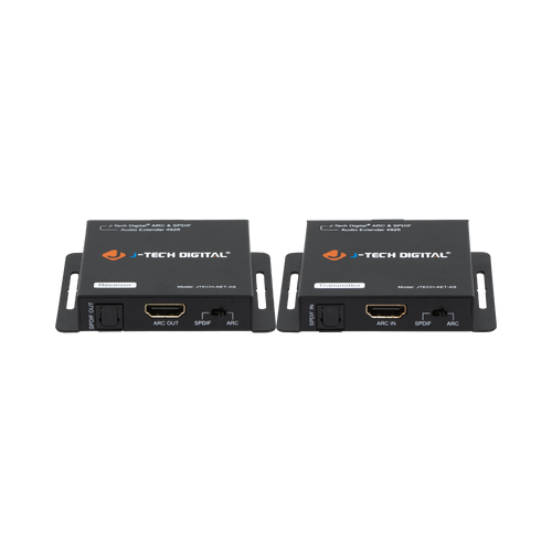 The JTECH-AET-AS is a digital audio extender that allows users to extend their HDMI-ARC (from and HDMI-ARC capable display), or their SPDIF Optical audio signal to an external sound system using a single CAT5e/6 ethernet cable (Up To 492ft.). The setup process is quick and easy, and the compact and lightweight design of the units allows you to place them out of sight for a clean looking setup.