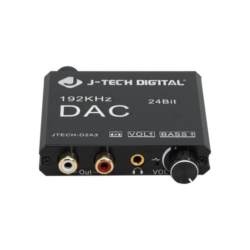 The J-Tech Digital JTECH-D2A3 digital to analog audio converter is the perfect device for integrating legacy AV equipment or headphones to your system. The JTECH-D2A3 supports 192kHz 24bit audio sampling for hi-fidelity audio to your analog audio components. Unlike most digital-to-analog signal converters, the JTECH-D2A3 features a volume amplifier and bass control function for ensuring your converted audio signal is ideal for your application.