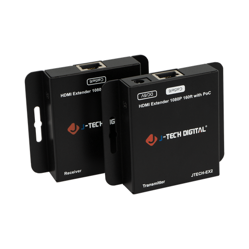 The JTECH-EX2 is an HDMI over single ethernet extender that can extend a full HD 1080P signal up to 160ft. The power over cable feature allows you to power the receiver via the transmitter over ethernet, making for an easy and neat install. Zero signal data-delay ensures that you get the best quality for your multimedia content at long range. The JTECH-EX2 is an easy to install, hassle free HDMI extender that can be used in any residential or commercial install.