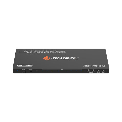 Transform any space with J-Tech Digital’s JTECH- VW0109-AE; 3x3 HDMI Video Wall Processor, designed for professional-grade video walls up to 9 displays. Effortlessly combine multiple screens into a single, seamless 1080p display, while supporting a 4K@30Hz input for stunning clarity. With 13 versatile display modes, including 3x3, 2x2, 2x4, 4x1, and splitter mode, you can tailor your video wall to any layout or installation need.