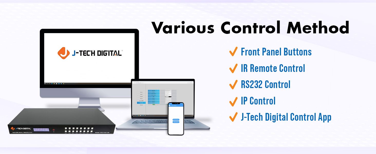 Built for industrial-grade reliability, the JTECH-8X8-H20 uses a state-of-the-art embedded chipset with ESD protection, tested for thousands of hours across professional environments such as security systems, digital signage, broadcast studios, and theaters.