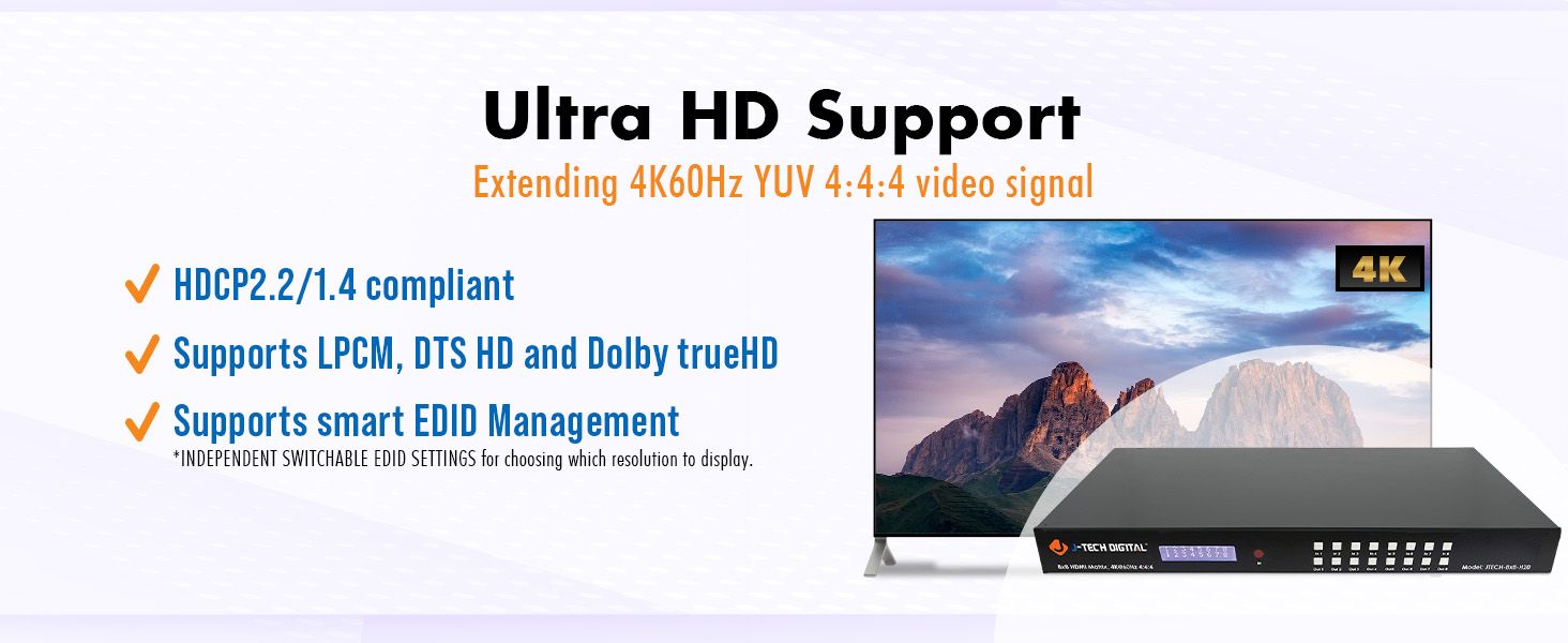 Delivering stunning 4K@60Hz Ultra HD video performance, this unit is fully HDMI 2.0 and HDCP 2.2 compliant, ensuring compatibility with the latest 4K displays, projectors, and sources.