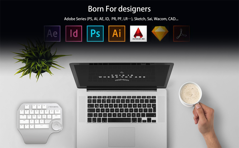 Boost your creative productivity with the JTD Customizable Keyboard, engineered to help designers, artists, and editors work up to 80% faster. Compatible with popular design and editing software such as Adobe Photoshop, Illustrator, After Effects, Premiere, InDesign, Lightroom, Sketch, Wacom, CAD, and more.