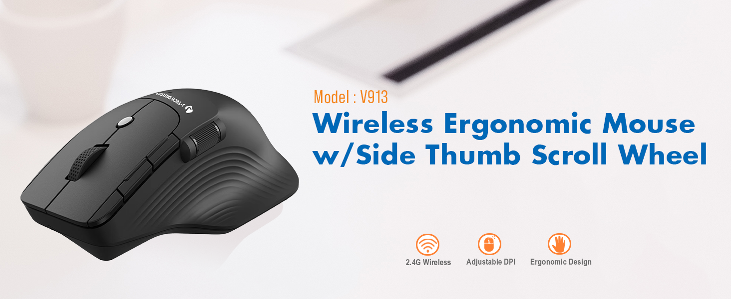 The J-Tech Digital V913 wireless ergonomic mouse is designed to provide a comfortable and relaxed experience for users looking to reduce the strain and discomfort on their wrist and arms while using a computer. With 32ft. working range, 3 different levels of easily adjustable DPI, and an attached palm rest for a relaxed grip, the V913 ergonomic mouse is perfect for daily use.