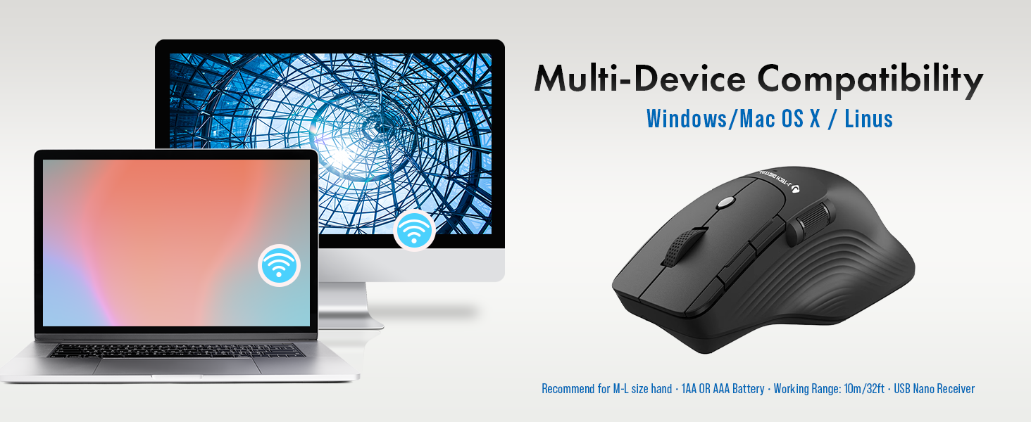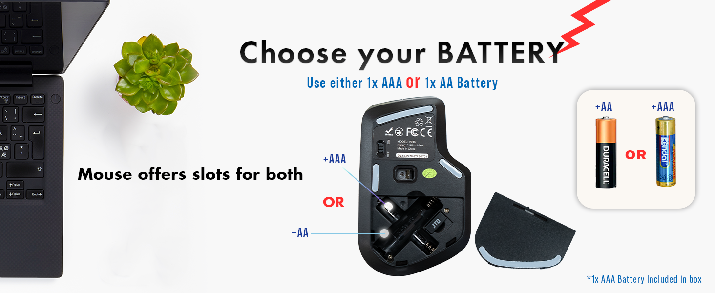 ✅ 2.4Ghz wireless connection | 32ft. working range | Use either 1 x AAA or 1 x AA to power the mouse