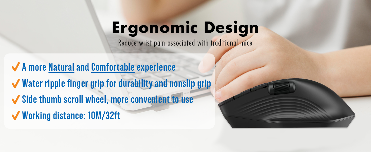 ✅ Ergonomic Design w/ side thumb scroll wheel (*Note: If side scroll function isn't working, visit our website, type jtd-2970 in the search bar, and download the mouse drivers.)