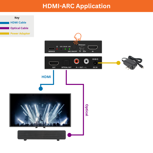 - For HDMI-ARC function, ensure that the displays HDMI-ARC port is plugged in to the extractor's HDMI Out port