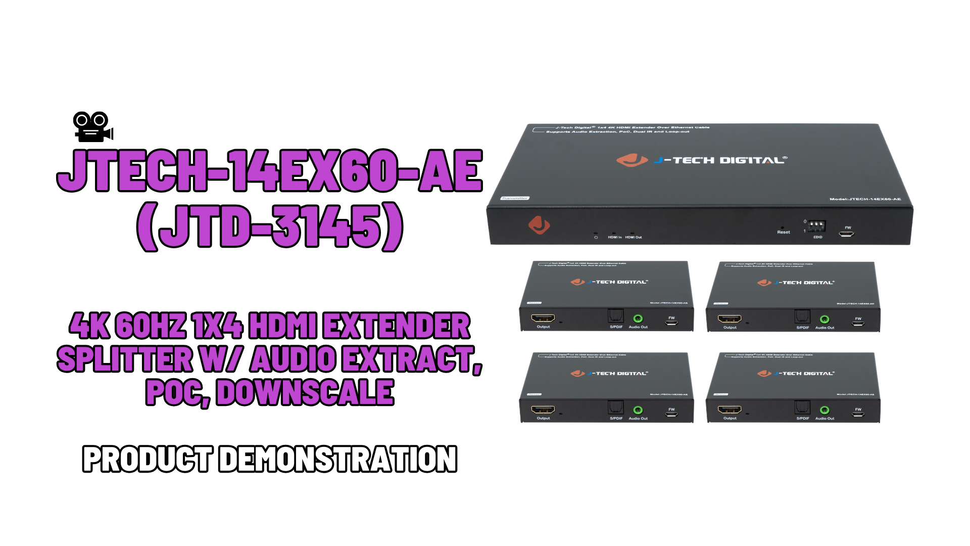 (Video) JTECH-14EX60-AE - 4K 60Hz 1x4 HDMI Splitter Extender Over Ethernet