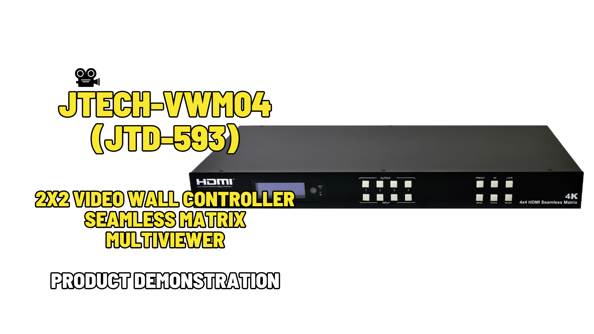 JTECH-VWM04 (JTD-593) - 4K 60Hz 2x2 Video Wall Controller, Seamless Matrix, & Multi-viewer