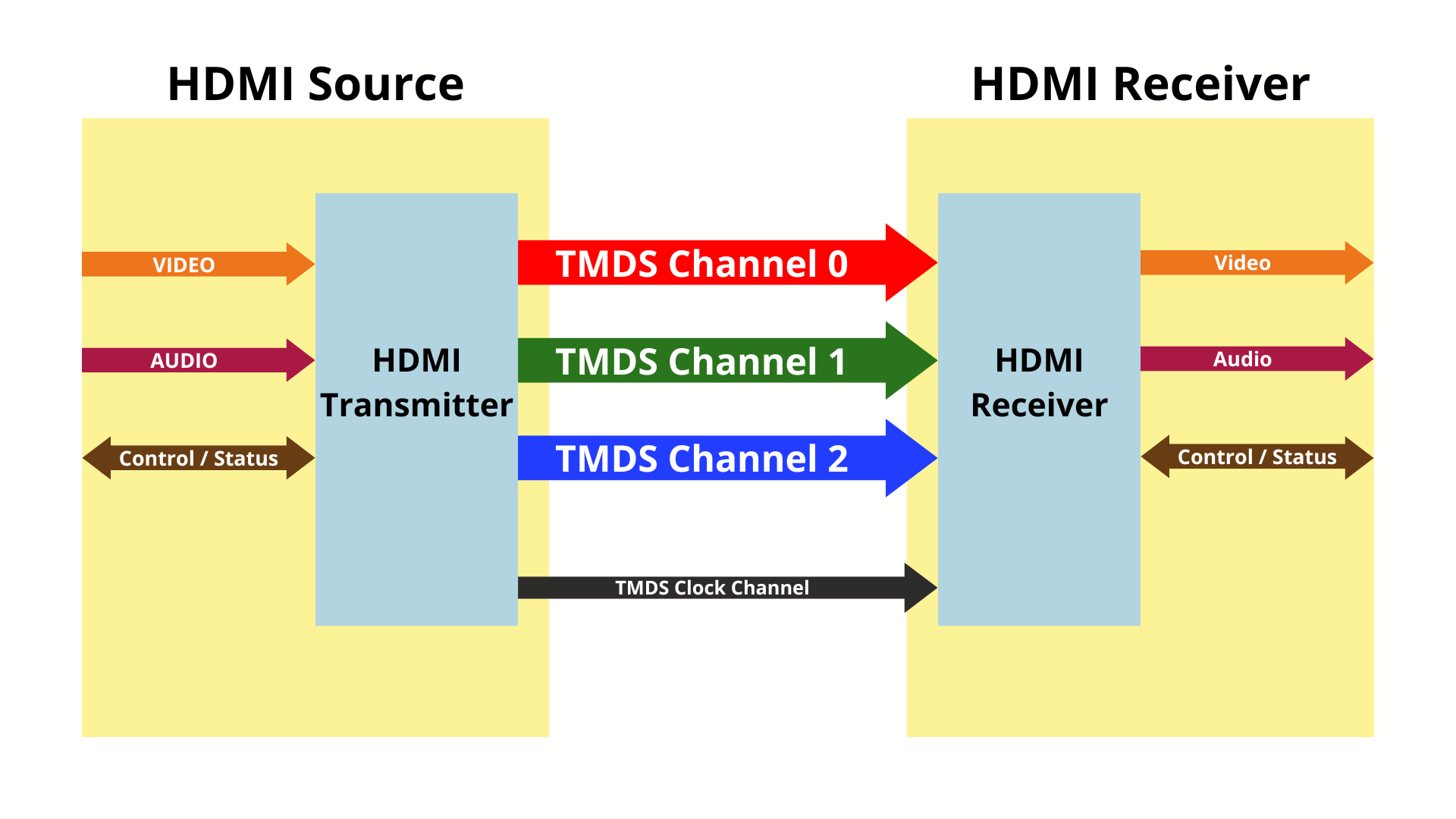 TMDS is a way of encoding the signal to protect it from degrading as it travels down the length of the cable. TMDS is a lot like RGBHV, and much like the analog world we live in today, in that it uses four channels: Red, Green, Blue and Clock.