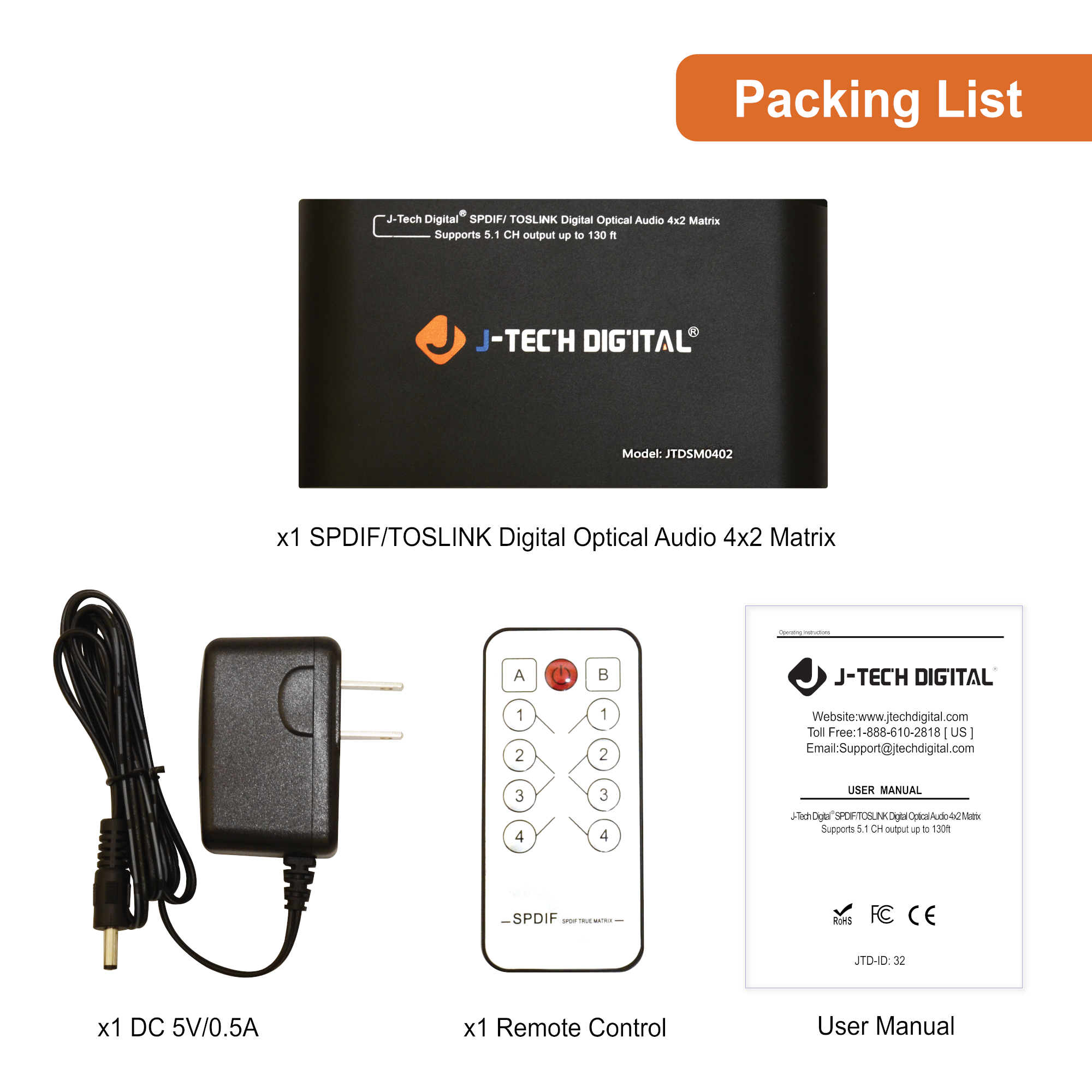 - 1 x 5V Power Adapter