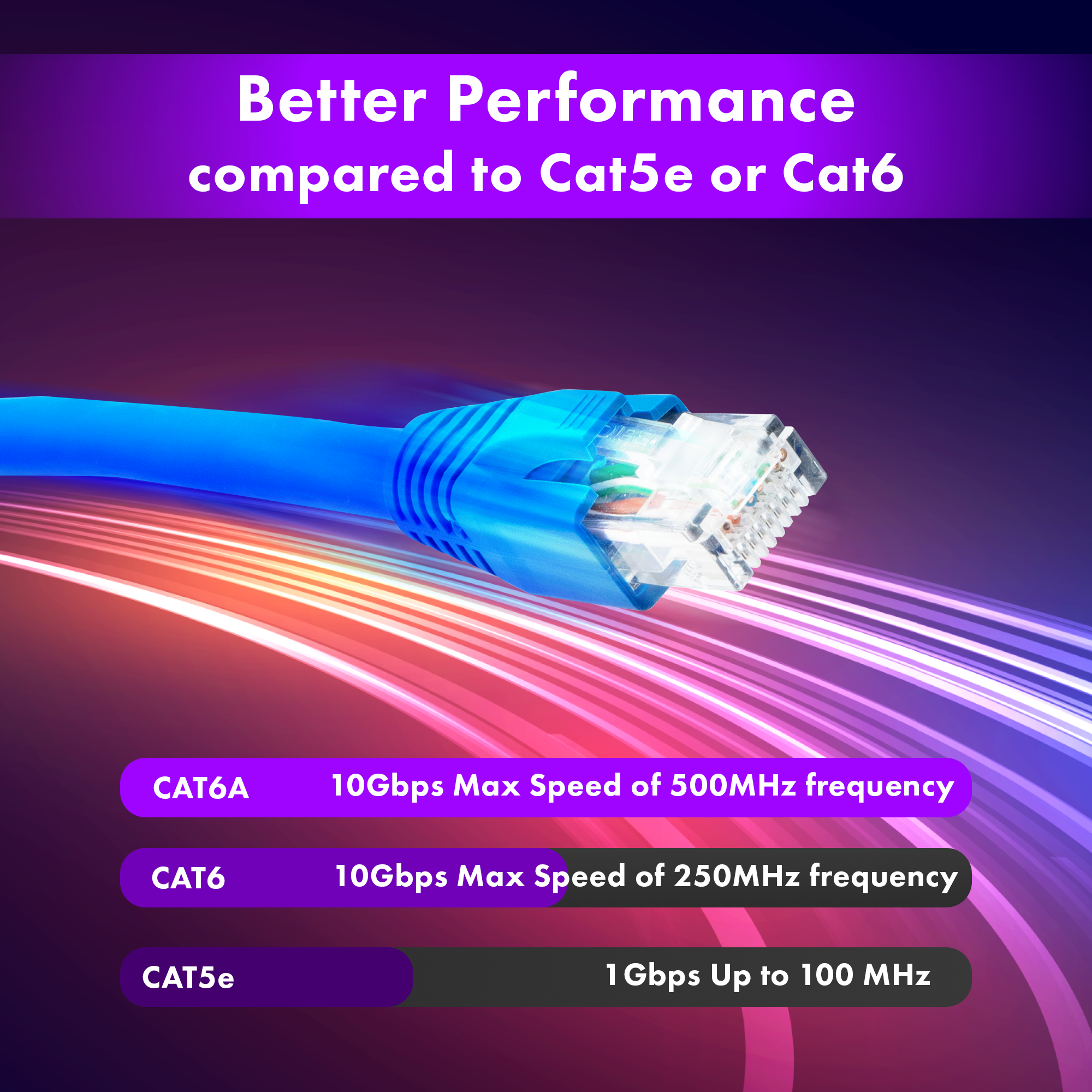 ✅ Cat6A Ethernet Cable U/UTP: Delivers ultra-fast data transfer rates up to 10Gbps with a 500MHz bandwidth, ideal for smooth audio-visual transmission and high-speed networking