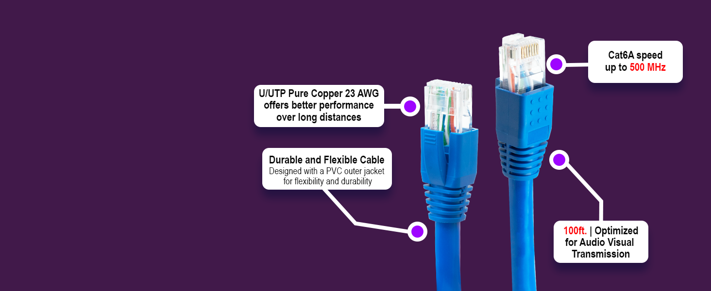 100ft. CAT6A Ethernet Cable - U/UTP Pure Copper 23AWG