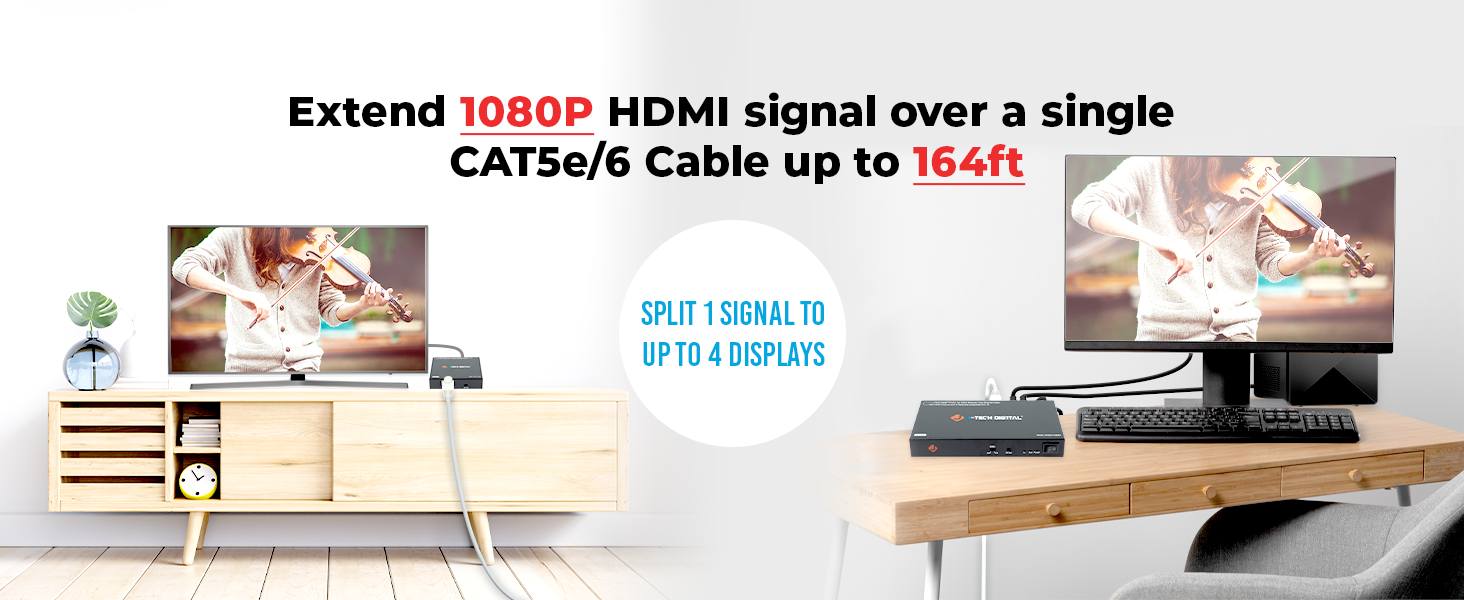 1080P 60Hz 1x4 HDMI Extender Splitter Over Ethernet (164ft.)