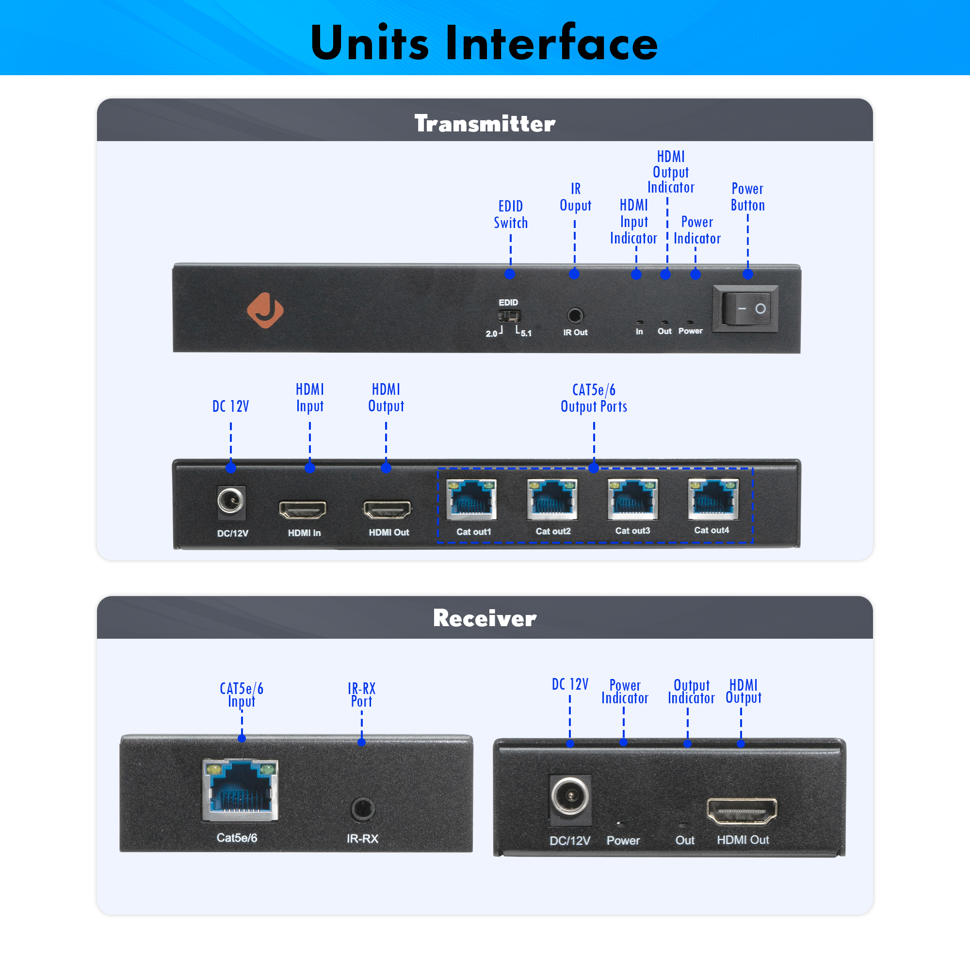- 1 x RJ45 Output, 1 x HDMI Output, 1 x IR RX