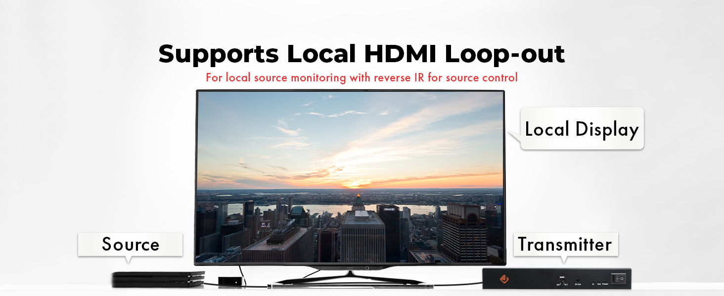 - 1 x HDMI Input, 1 x HDMI Local Loop Output, 4 x RJ45 Output, 1 x IR TX