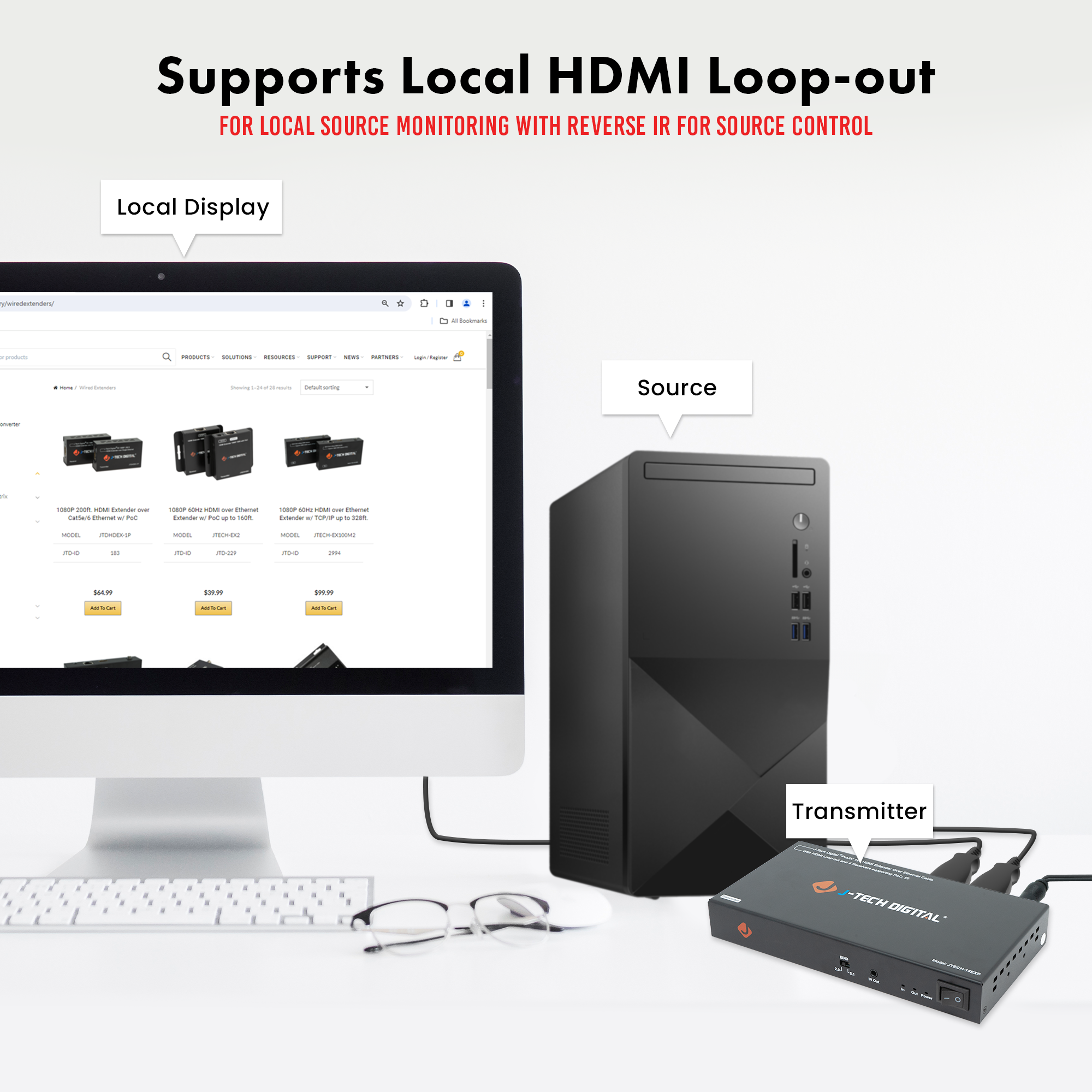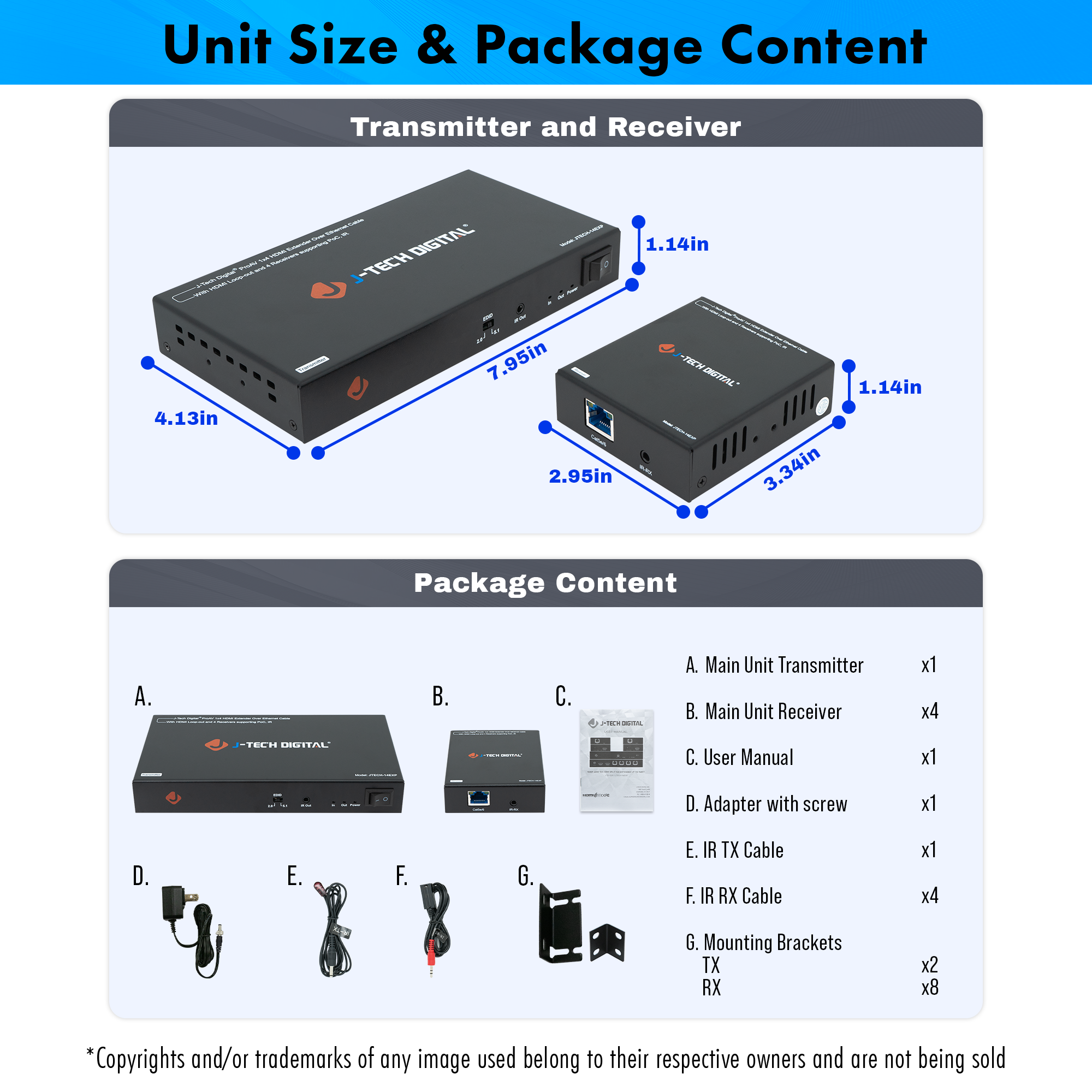 Additionally, the JTECH-14EXP offers IR control, allowing easy remote operation of your source device from any display location. It supports various digital audio formats and includes an EDID toggle switch to ensure optimal audio compatibility. With its plug-and-play setup, this unit is ideal for both commercial and residential setups, providing a tidy and efficient configuration.