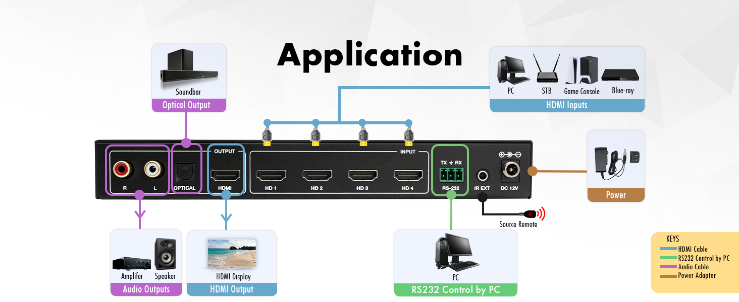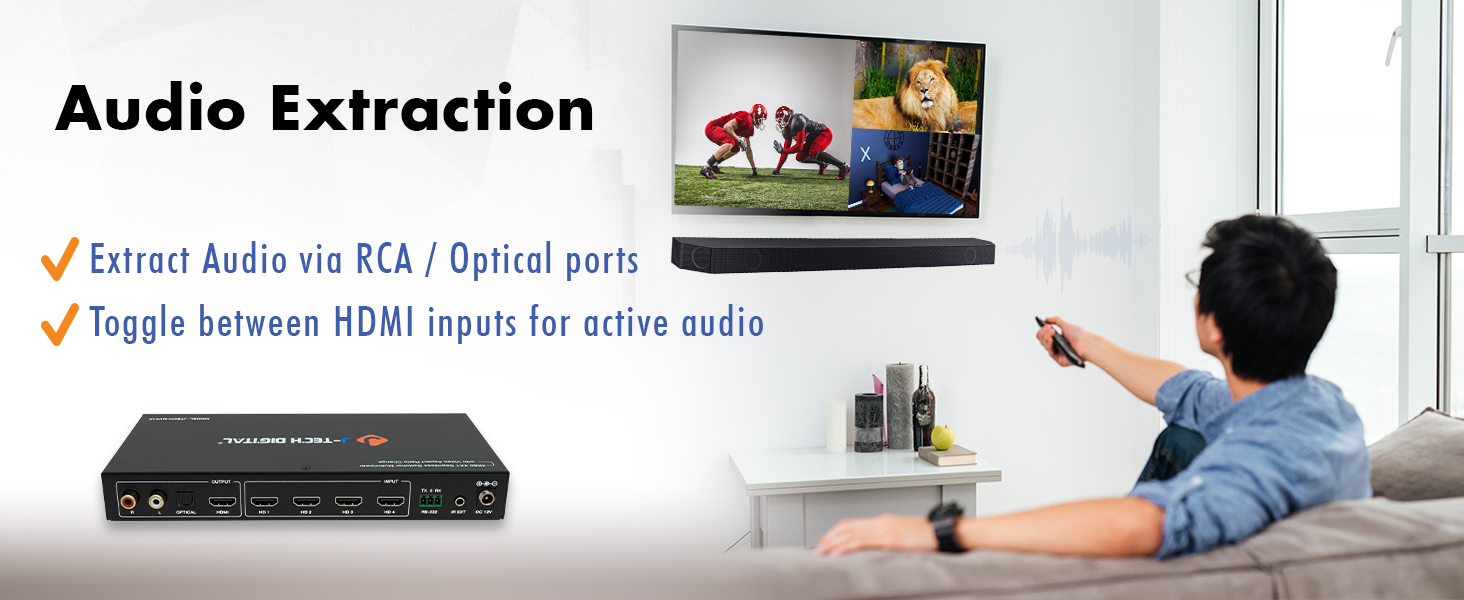 ✅Audio extraction feature via RCA & Optical | Toggle between HDMI inputs to select active audio