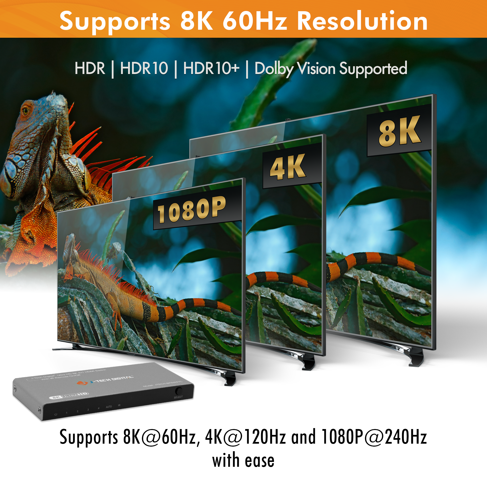 8K 60Hz 4x1 HDMI Switch with IR Remote