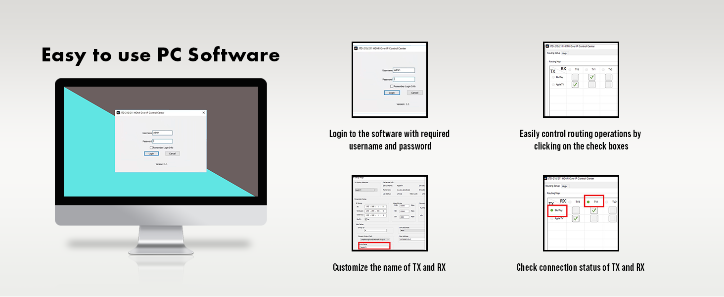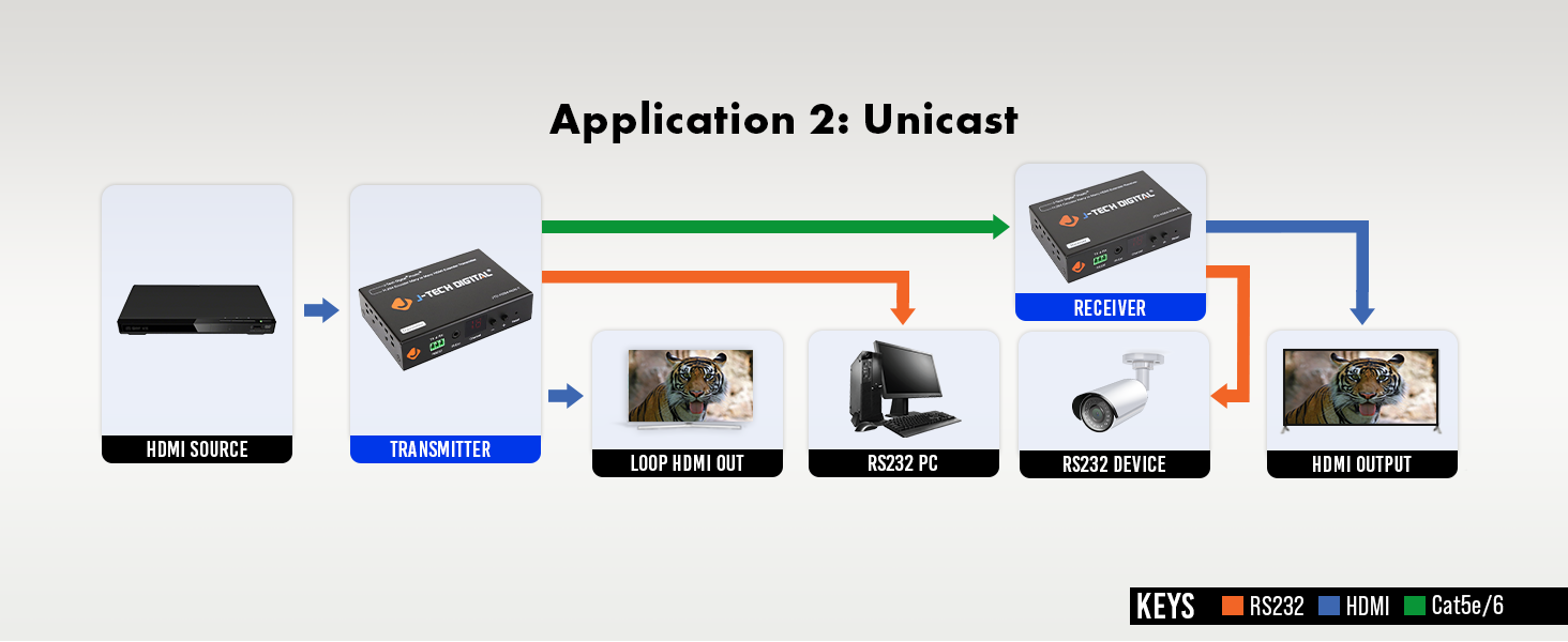 With a Bi-Directional RS-232 passthrough, users can control RS-232 enabled devices, such as rotatable cameras, from a PC connected to their Transmitter.