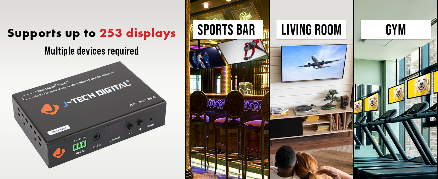 The J-Tech Digital ProAV HDMI Extender/H.264 Encoder and Decoder features the most innovative technology and easy-to-use design. It is an ideal solution for different applications in different environments including home theater, church projection systems, bar screens, advertising screens, broadcasting stations, and public theaters etc.