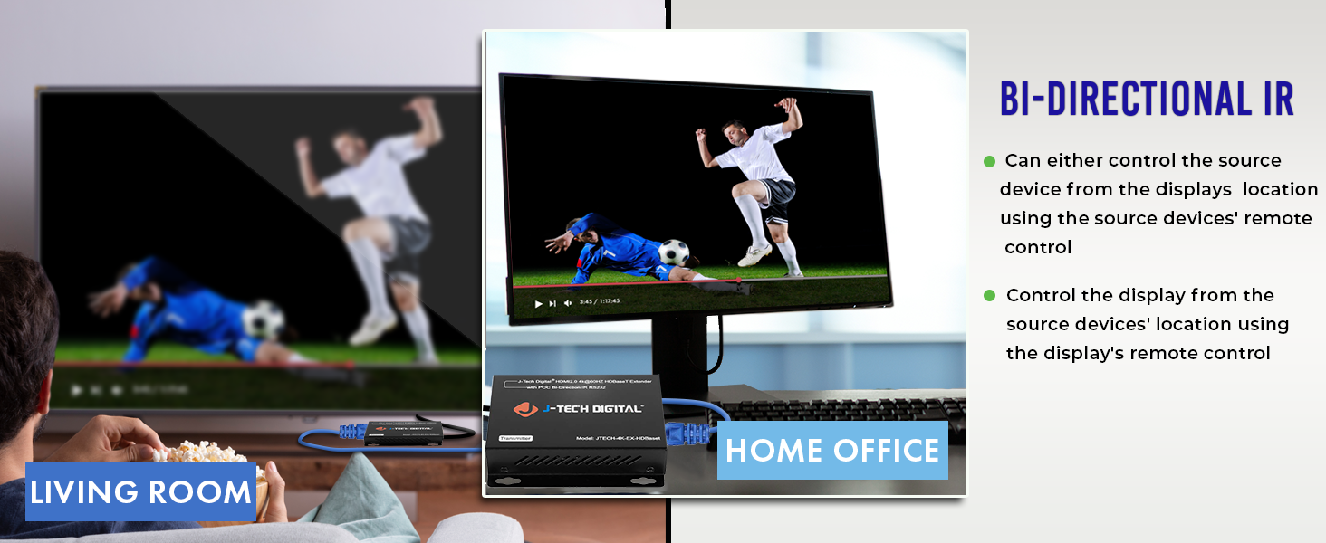 Includes bi-directional IR (20~60kHz) for remote control from either end and a Phoenix RS232 port for firmware updates or serial control integration.