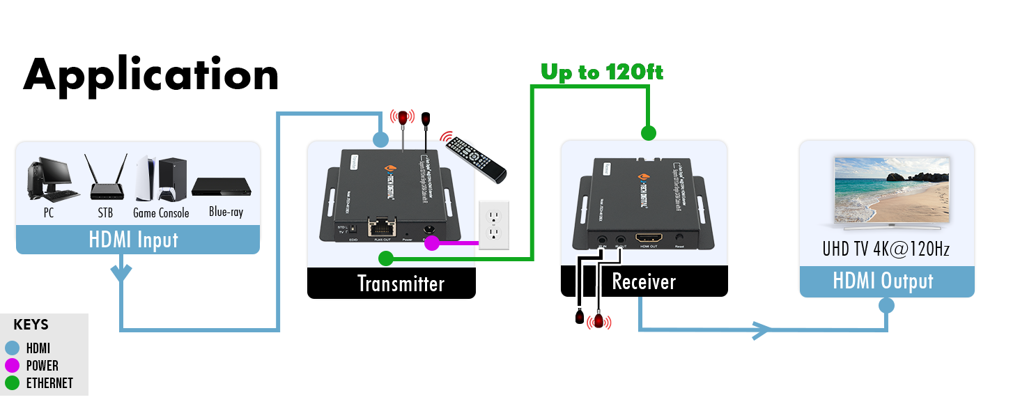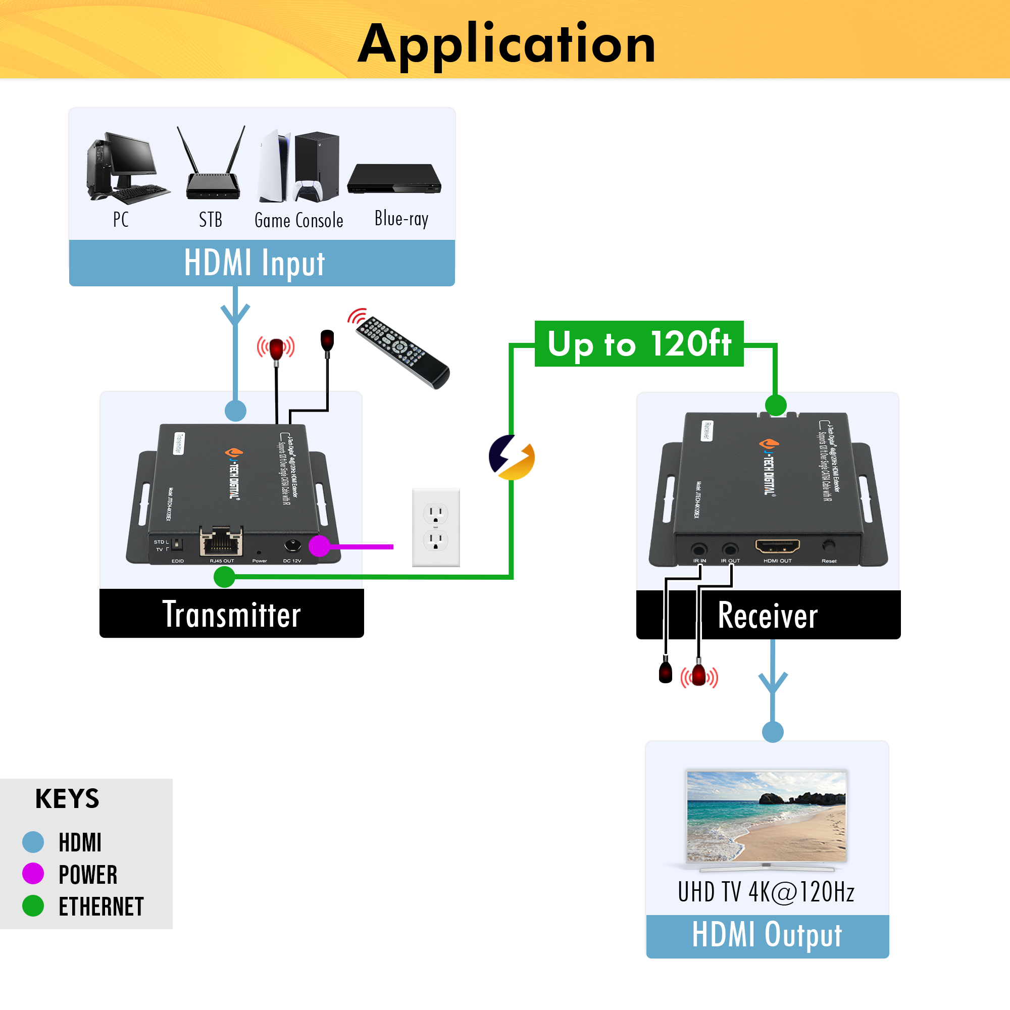 ✅ Resolution support up to 4K 120Hz 4:4:4 up to 120ft. over single CAT6A/7 (*Not compatible with Acer XV282K monitor for 4K 120Hz)