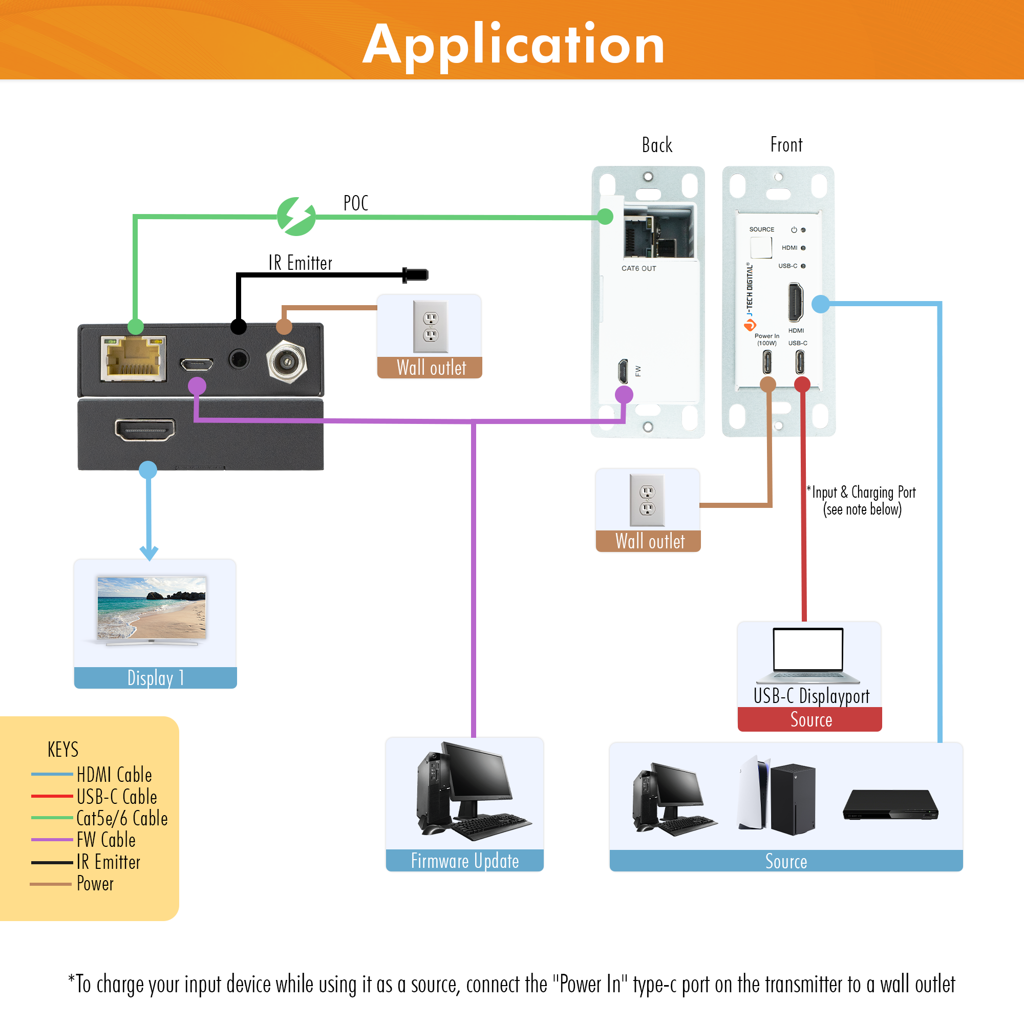 ✅ Charge your USB-C device while using it as an input (Note: To charge your USB-C input device while using it as a source, connect the “Power In” USB-C port on the transmitter to a wall outlet)