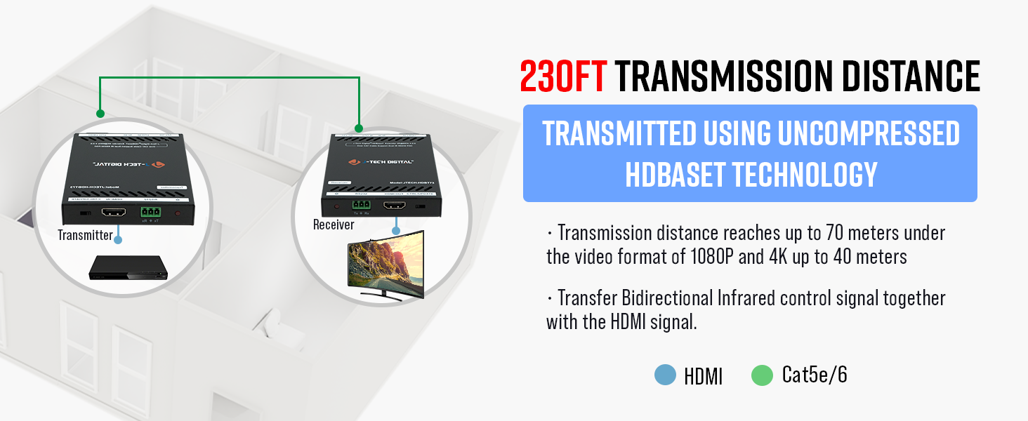 ✅ Transmission distance up to 40m for 4Kx2K and 70m for 1080p.