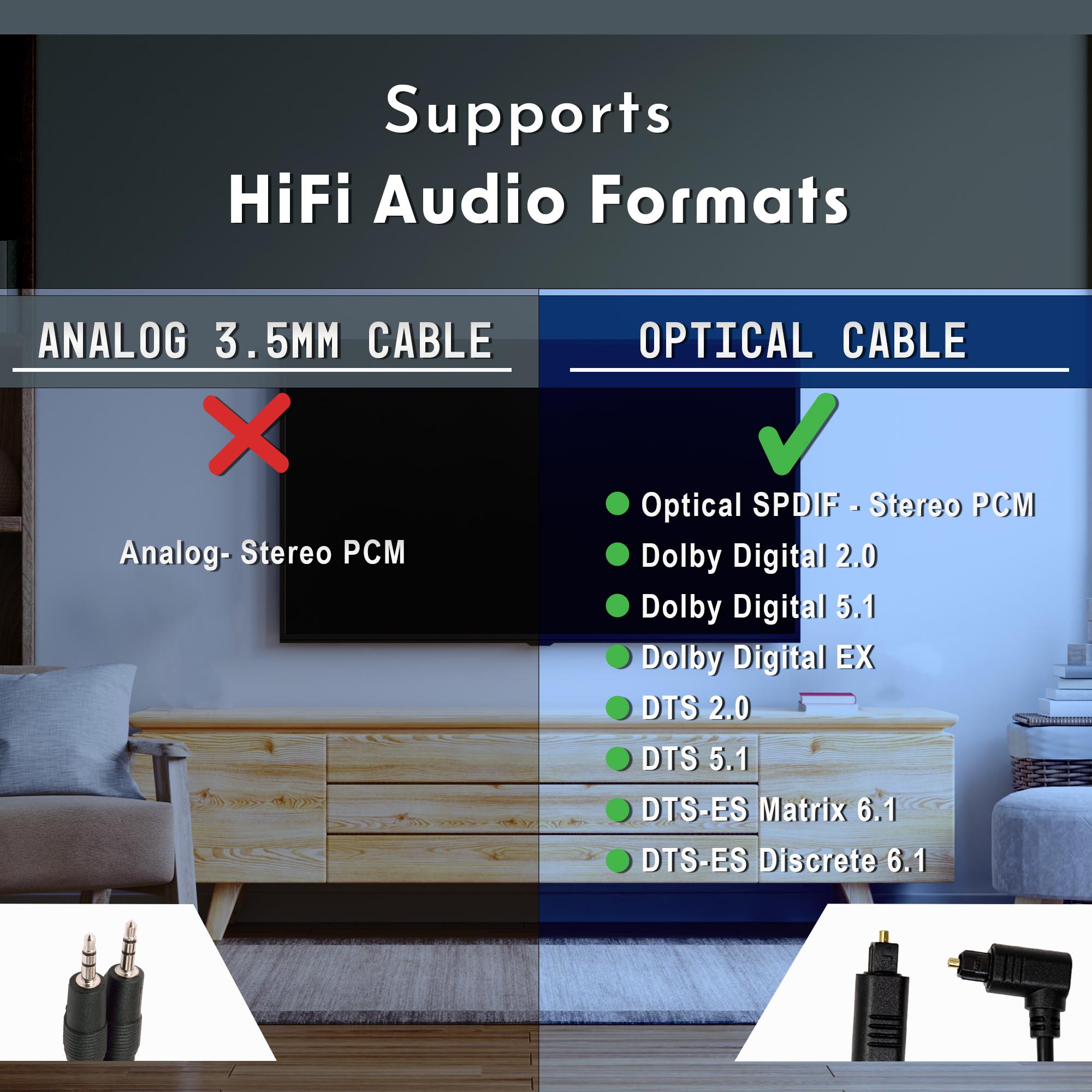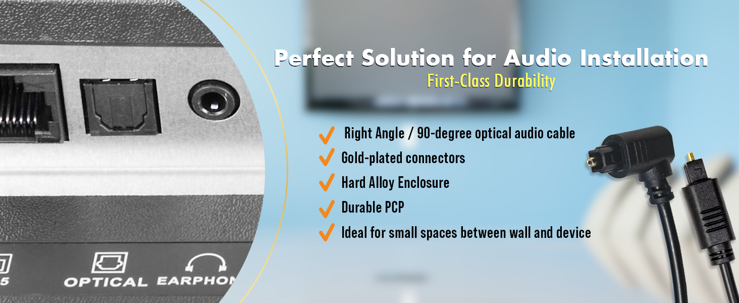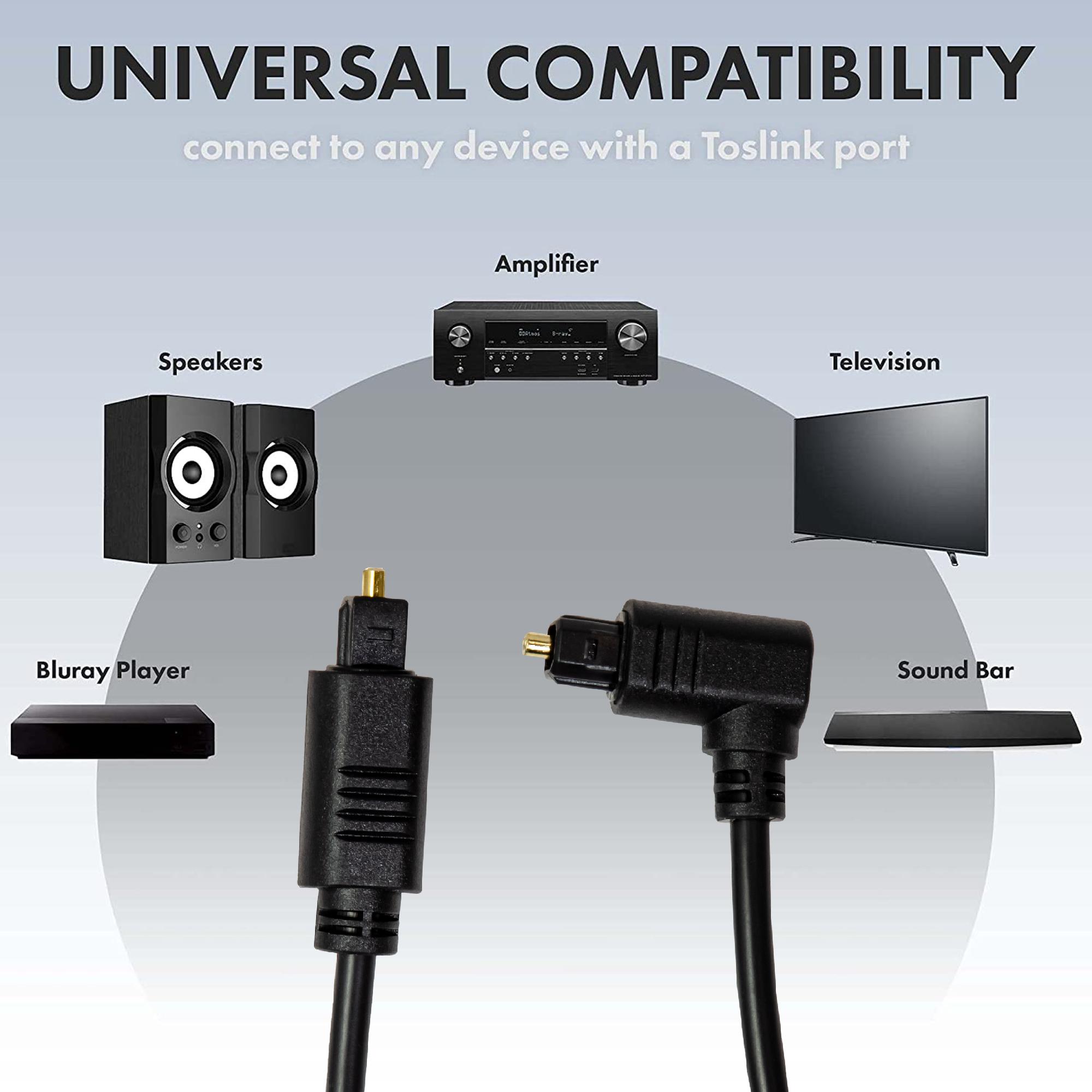 6ft Optical Cable with 90 Degree Angle Connection – Dolby Digital and DTS Support