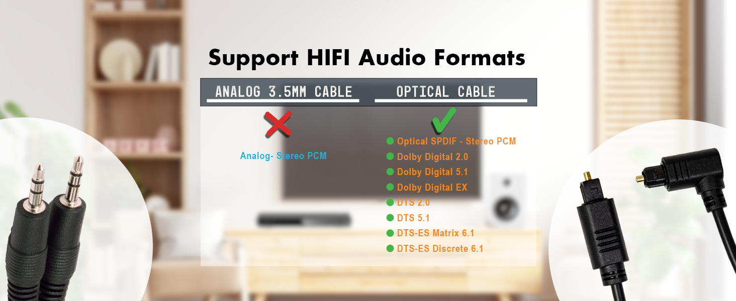 ✅ Connectors – 1 x Optical SPDIF (straight) | 1 x Optical SPDIF (90 degree)