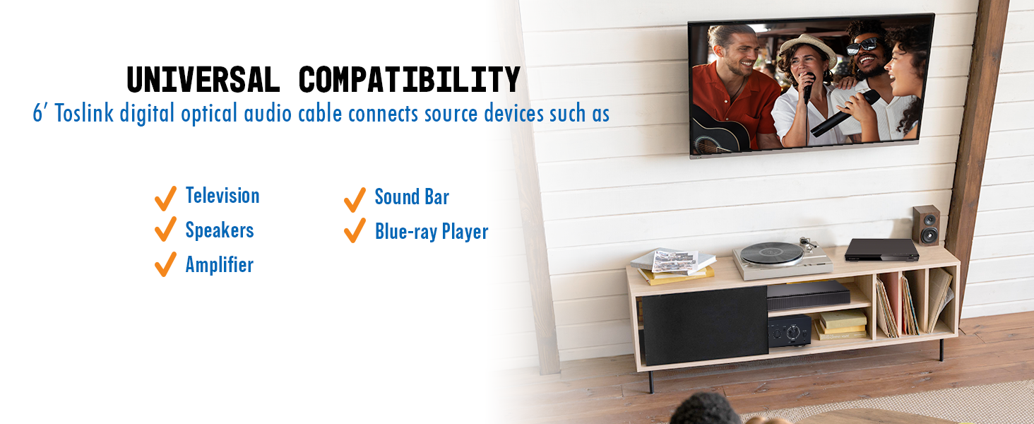The J-Tech Digital JTECH-SP6FB right angle / 90° digital SPDIF optical audio cable allows you to connect your computer, portable digital audio equipment, digital media player, audio streaming device (chromecast, Bluetooth audio receiver) or any source device with an optical audio output port to your AV receiver, preamplifier, audio system, home theater system, soundbar or bookshelf speaker. Easily connect hard-to-access optical audio ports with the JTECH-SP6FB right angle / 90-degree optical audio cable. Designed specifically for easy installation, this optical audio cable will keep you stress free and, on the couch, enjoying audio before long.